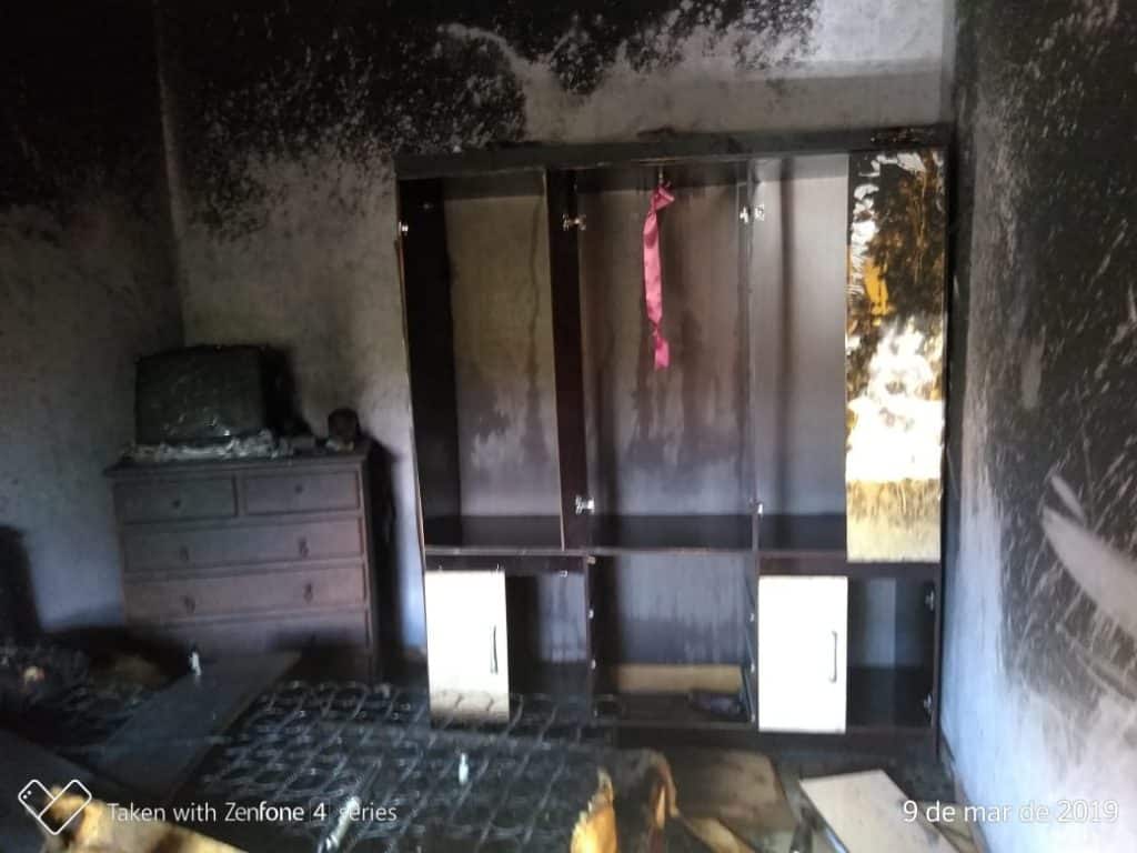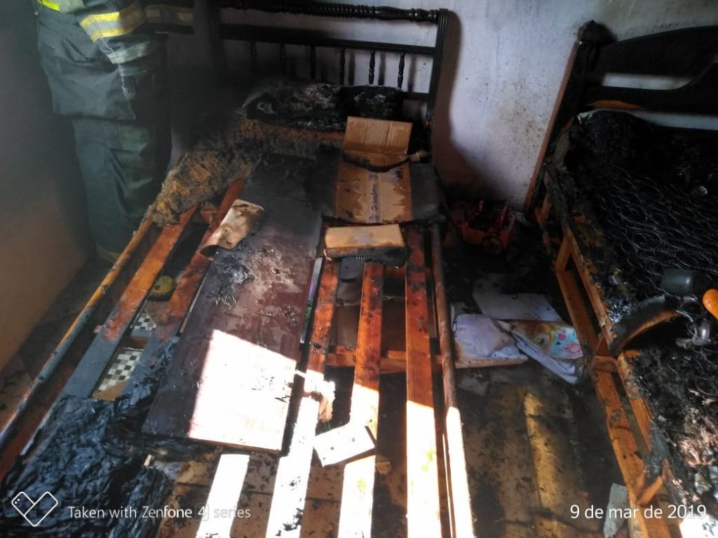 Quando os bombeiros chegaram ao local ainda havia resquícios de queima, sendo realizados os trabalhos de rescaldo e eliminação completa do incêndio. O morador não suspeita da causa do incêndio e a equipe de Bombeiros não visualizou no local nenhum sinal indicativo do início do fogo. Foi verificado que o incêndio atingiu apenas o quarto no segundo pavimento que possui seis cômodos, destruindo duas camas, uma televisão de 20 polegadas, um guarda-roupa e uma cômoda.