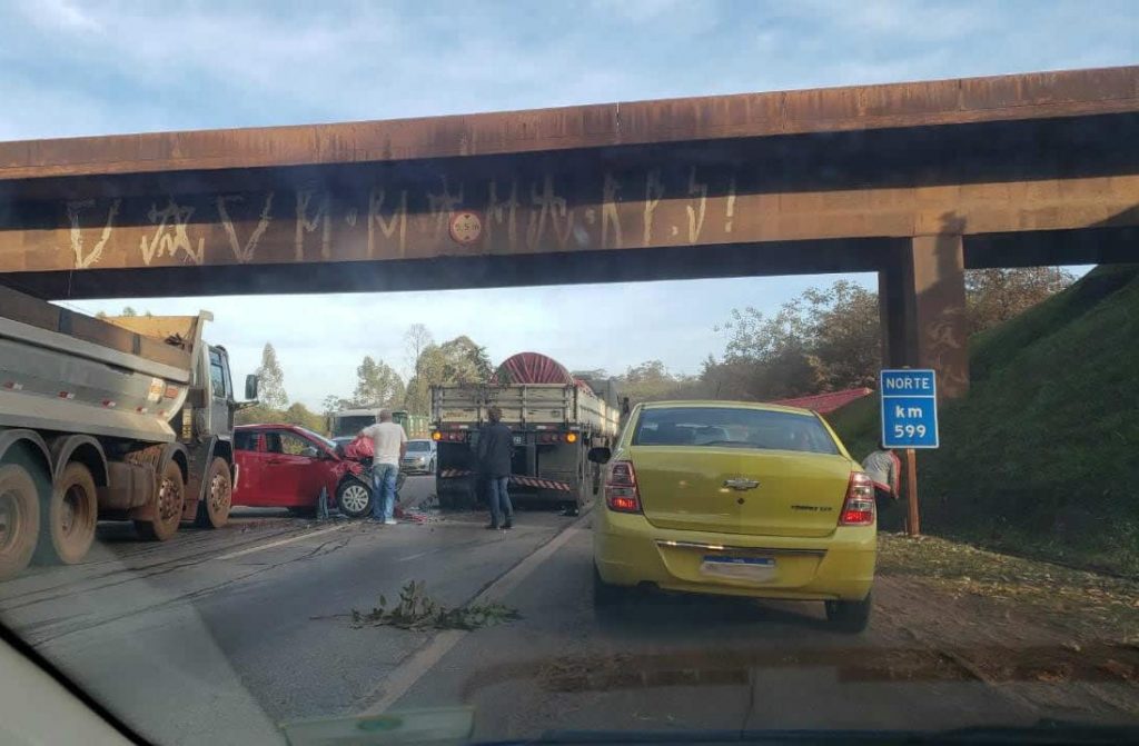 Um acidente foi registrado nesta terça-feira, 16/07, no km 599, da BR-040. O acidente envolveu uma carreta e um veículo de passeio, próximo ao acesso a mineradora Vale, em Congonhas, sentido Belo Horizonte.