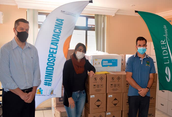 Integrante do movimento Unidos Pela Vacina e madrinha da cidade de Belo Vale, a Líder Aviação acaba de doar para o município diversos insumos, como cinco câmaras frias, 100 galões de 5L de álcool em gel, 80 caixas coletoras de material perfurocortante, 50 pacotes de algodão e 80 embalagens de gelo rígido (200 ml e 400 ml).
