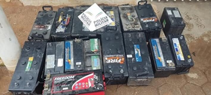 Em seu estabelecimento comercial, a Polícia Militar localizou 16 baterias de caminhão, todas reconhecidas pelas vítimas do furto. Na casa de um dos autores, mediante prévia autorização, a Polícia Militar procedeu com buscas e apreendeu materiais para dolagem, uma barra e uma bucha de maconha, uma faca, um rádio HT e uma réplica de espingarda. O autor foi preso pelo crime de furto e também por tráfico de drogas, enquanto o seu comparsa foi preso pelo crime de furto. Já o indivíduo que comprou as baterias furtadas recebeu voz de prisão pelo crime de receptação. Todos foram encaminhados à Delegacia de Polícia juntamente com os materiais apreendidos.