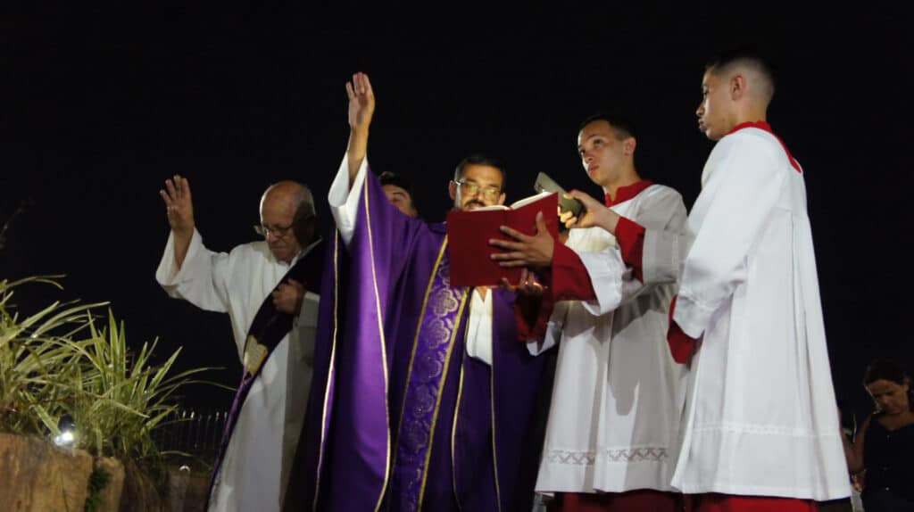 Juntamente com o diácono João Bartolomeu e o vigário paroquial, padre Geraldo Luzia do Carmo, o reitor e pároco da Basílica, padre Euder Daniane Canuto Monteiro agradeceu aos paroquianos e devotos do Sagrado Coração de Jesus que colaboraram com a reforma da torre. Após abençoar a torre, foi descerrada uma placa alusiva ao ato de reforma.