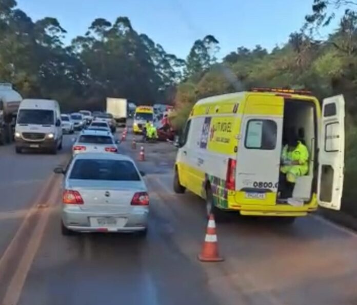 Uma pessoa morreu em um acidente na altura do Km 567 da BR-04 em Nova Lima na manhã desta terça-feira, 02/05. De acordo com a Polícia Rodovia Federal (PRF), o acidente envolveu dois carros de passeio e um caminhão.
