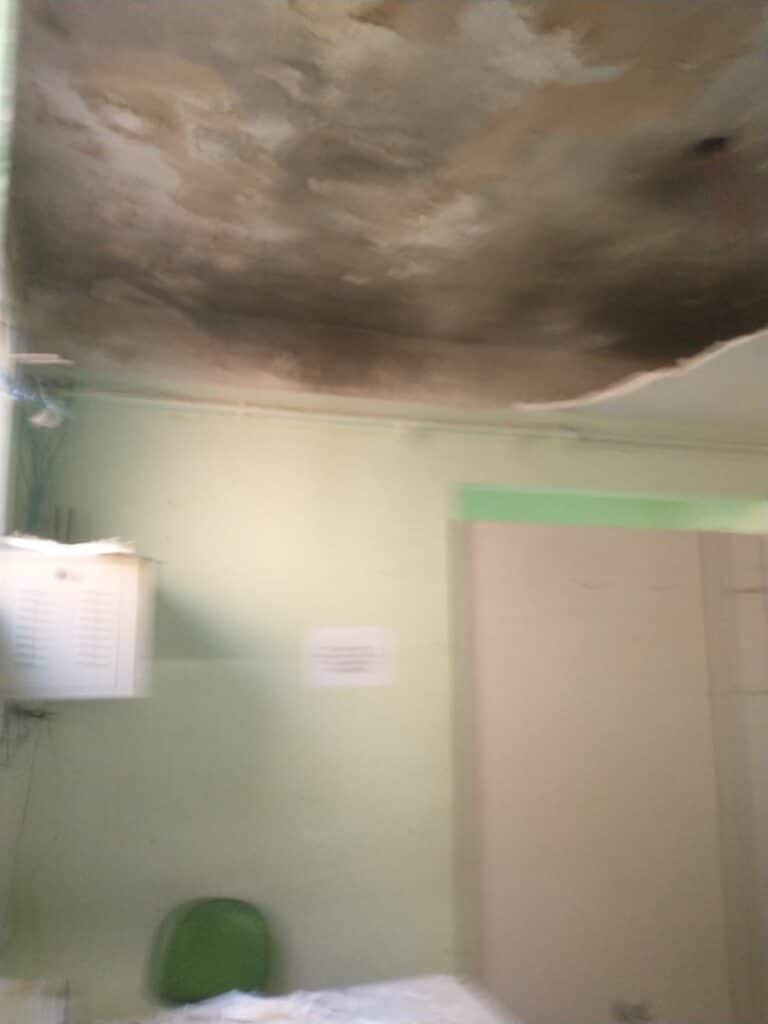 Pacientes que estavam na Policlínica Municipal de Conselheiro Lafaiete, presenciaram um fato ocorrido no domingo, 30/04. No local houve o desabamento de parte do teto de uma das salas de atendimento.