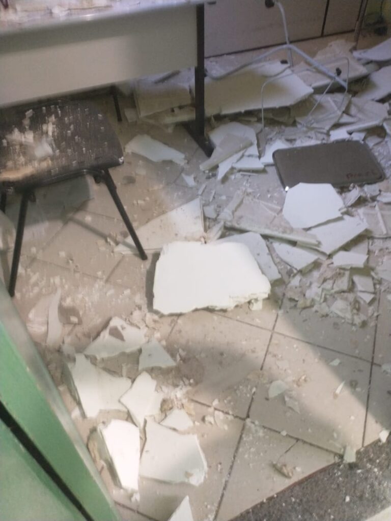 O teto que é de gesso caiu inclusive sobre uma mesa. Apesar do susto ninguém se feriu. A reportagem do site Lafaiete Agora entrou em contato com a Secretaria Municipal de Saúde, por meio do Departamento da Atenção Especializada.