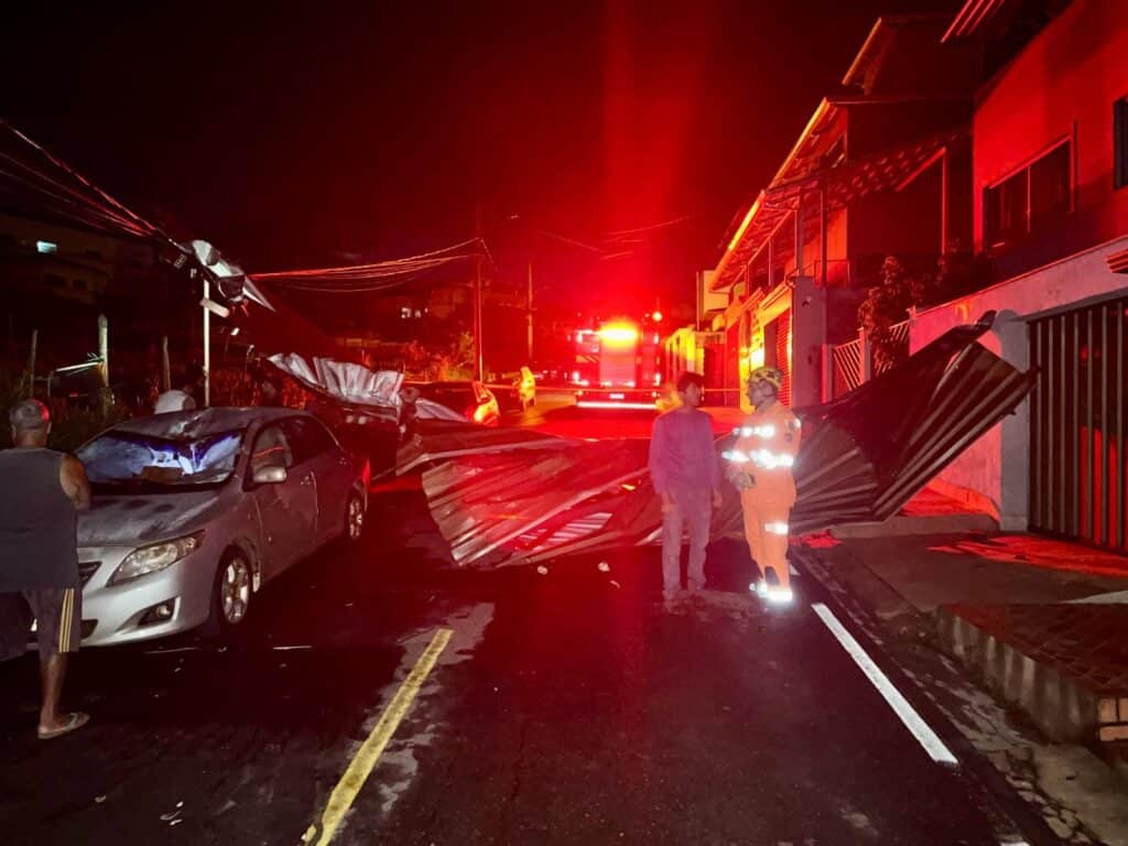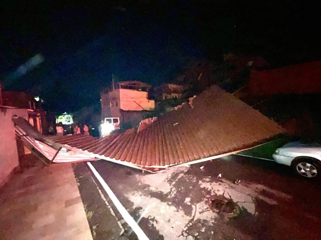 No Tancredo Neves, um telhado de zinco de uma casa foi retirado pela ventania, ficando preso sobre a fiação elétrica de alta tensão. Parte da estrutura amaçou um veículo. Aquela região da cidade está sem energia elétrica. Por isso, a Defesa Civil solicitou que um caminhão munck da Prefeitura para a retirada do telhado do local. Em seguida, a CEMIG, que já atua em outros pontos da cidade, irá providenciar o restabelecimento do fornecimento de energia elétrica. O Corpo de Bombeiros também atuou no local.