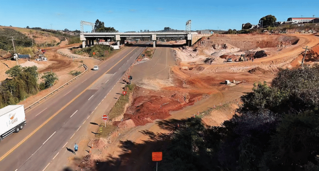 A partir desta quarta-feira (1º), o tráfego na altura do km 607 da BR-040, em Congonhas, passará por uma alteração pontual no sentido Rio de Janeiro, para execução de obra da Prefeitura Municipal. Os motoristas serão direcionados para uma pista lateral temporária, construída à direita da rodovia com extensão aproximada de 900 metros, e retornarão em seguida ao fluxo principal. A mudança deve durar cerca de 60 dias, conforme o cronograma informado pelo município.