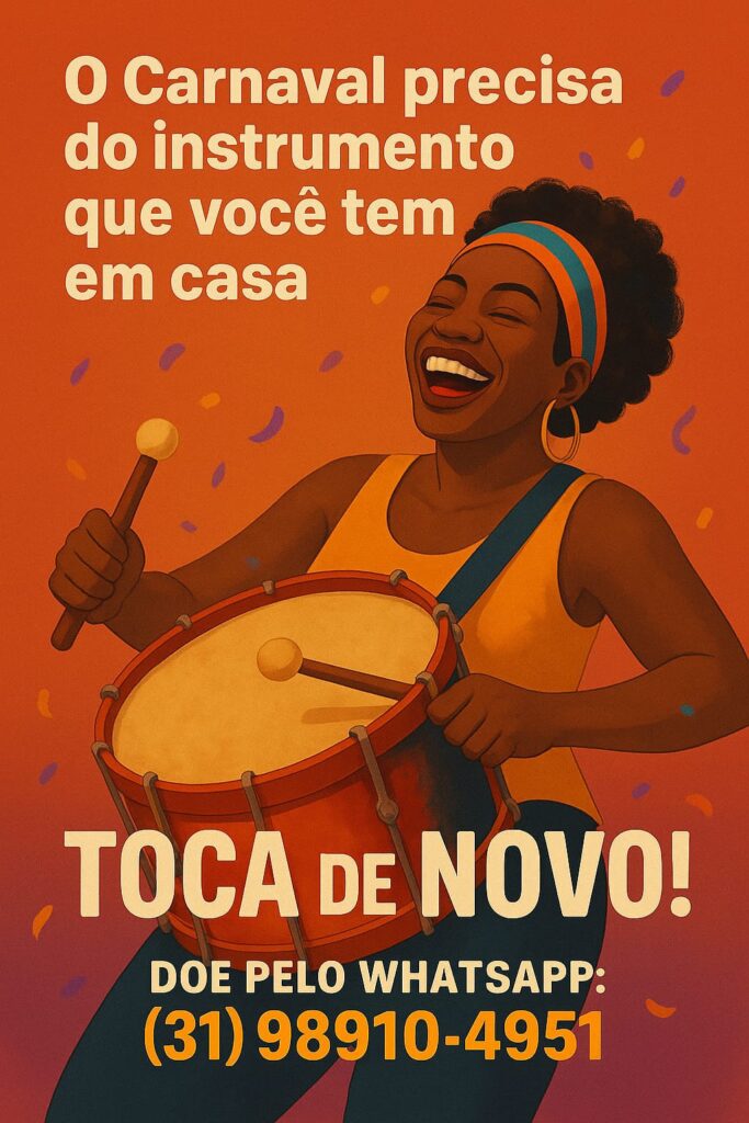 O gesto é simples, mas de grande impacto. Basta procurar nos cantos da casa: aquele surdo encostado, o violão sem cordas, o trompete esquecido, o tamborim amassado. Tudo pode ser restaurado e voltar a ecoar nas ruas. Para doar, basta entrar em contato pelo WhatsApp (31) 98910-4951.