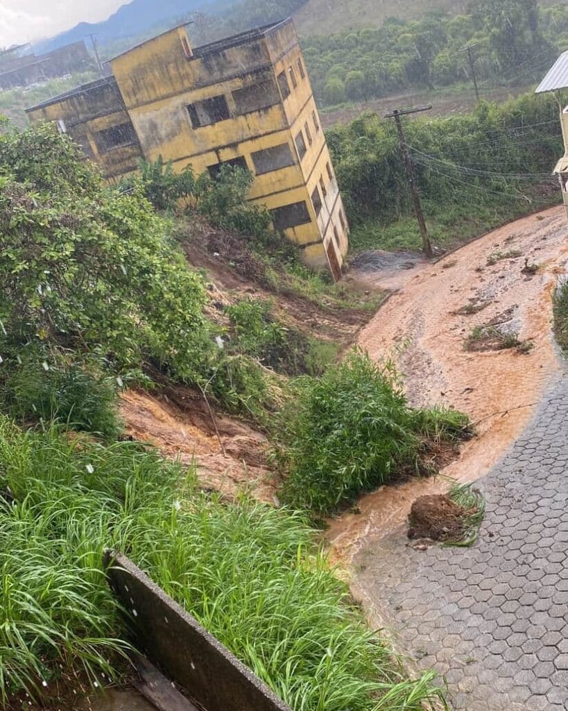 No bairro Carangola, a enxurrada desceu com força, arrastando grande quantidade de terra para a rua. No Morro dos Moreiras, uma árvore caiu sobre a rede elétrica, rompendo fios de alta tensão e deixando parte da localidade sem energia. Situação semelhante foi registrada na rua Coronel Moreira, onde um cabo de energia se rompeu, e no Morro dos Maias, onde houve o tombamento de um poste.