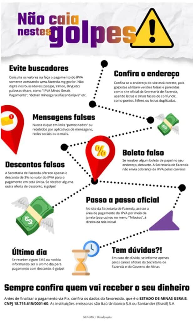 Vale alertar que não há previsão de ressarcimento para vítimas que tenham efetuado pagamentos fraudulentos. Caso o contribuinte caia em um golpe, não estará isento de pagar o IPVA para regularizar sua situação. Por isso, é fundamental ter atenção às dicas de segurança.