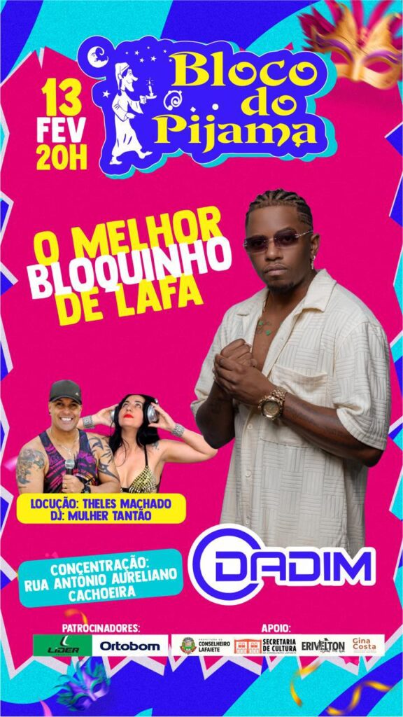 Completando 30 anos de fundação, o Bloco do Pijama promete uma grande festa nesta sexta-feira, 13/2, no bairro Cachoeira em Conselheiro Lafaiete. Tradição no Carnaval de rua da cidade, o Bloco do Pijama retornou as atividades no ano passado após vários anos.