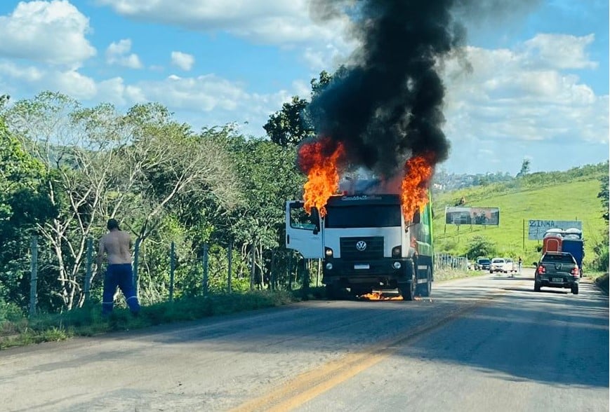 Motoristas que trafegam na MG 129 entre Conselheiro Lafaiete e Ouro Branco devem redobrar a atenção. Na tarde desta quarta-feira 15/04, um caminhão de coleta de lixo se incendiou na rodovia próximo à comunidade de Rancho Novo.