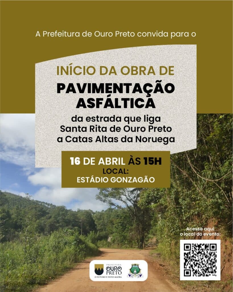 Um novo capítulo começa a ser escrito na mobilidade da região. A tão aguardada pavimentação da estrada que liga o distrito de Santa Rita a Catas Altas da Noruega tem início nesta quinta-feira (16/4), com cerimônia marcada para as 15h, no Ginásio Gonzagão, em Santa Rita, marcando um momento histórico para moradores e para o desenvolvimento regional.