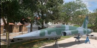 Caça F5 da FAB está sendo instalado em praça de Carandai