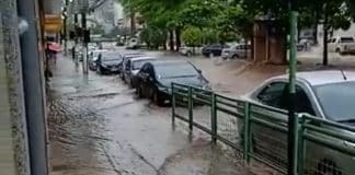 Chuva forte provoca alagamentos no Centro de Lafaiete