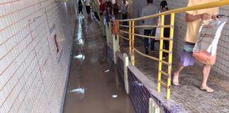 De novo! Chuva volta a alagar passagem subterrânea em Lafaiete