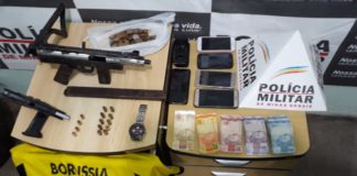 PM prende suspeitos de roubar veículo, assaltar lanchonete e apreende submetralhadora