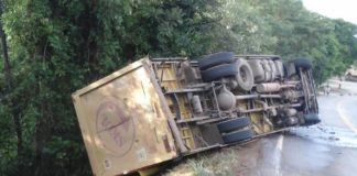 Caminhão de cerveja tomba e motorista é socorrido