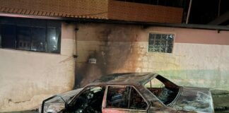 Carro fica destruído após se incendiar