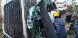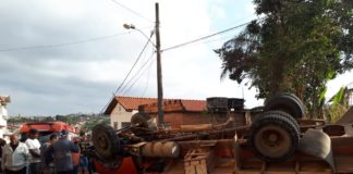 Homem fica ferido em capotamento de caminhão carregado com tijolos