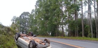 Carro capota e fica com rodas para cima na MG-482
