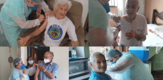 Idosos com mais de 89 anos recebem a primeira dose da...