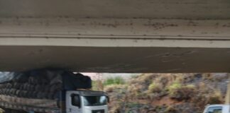 Caminhão agarra no viaduto do bairro São Dimas em Lafaiete